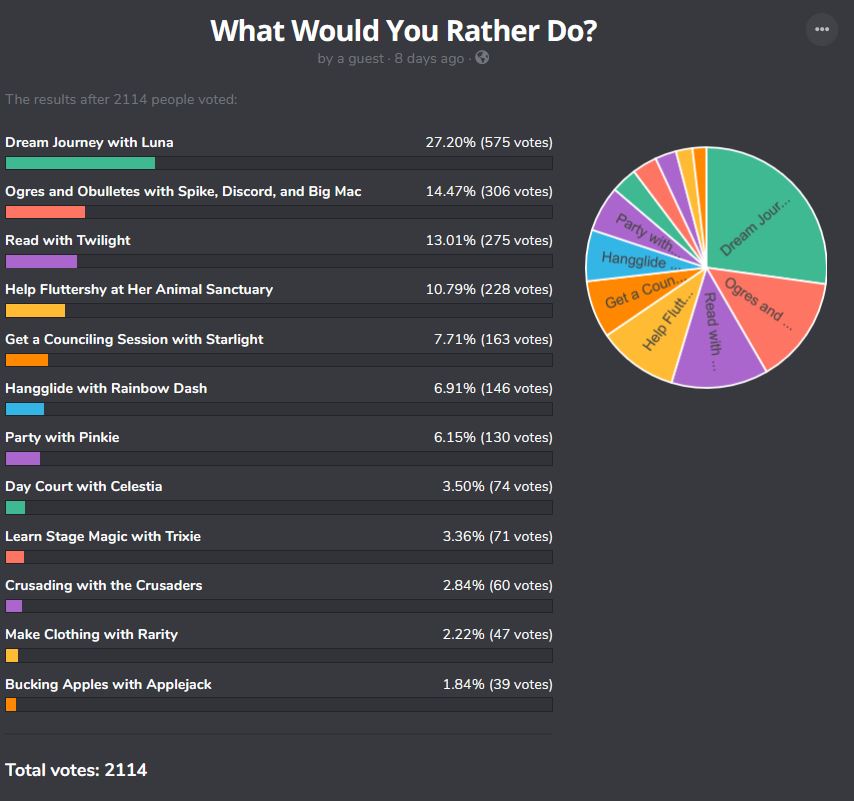 - Résultats des sondages avec le personnage de la série que vous aimerez bien accompagner dans ses occupations habituelles